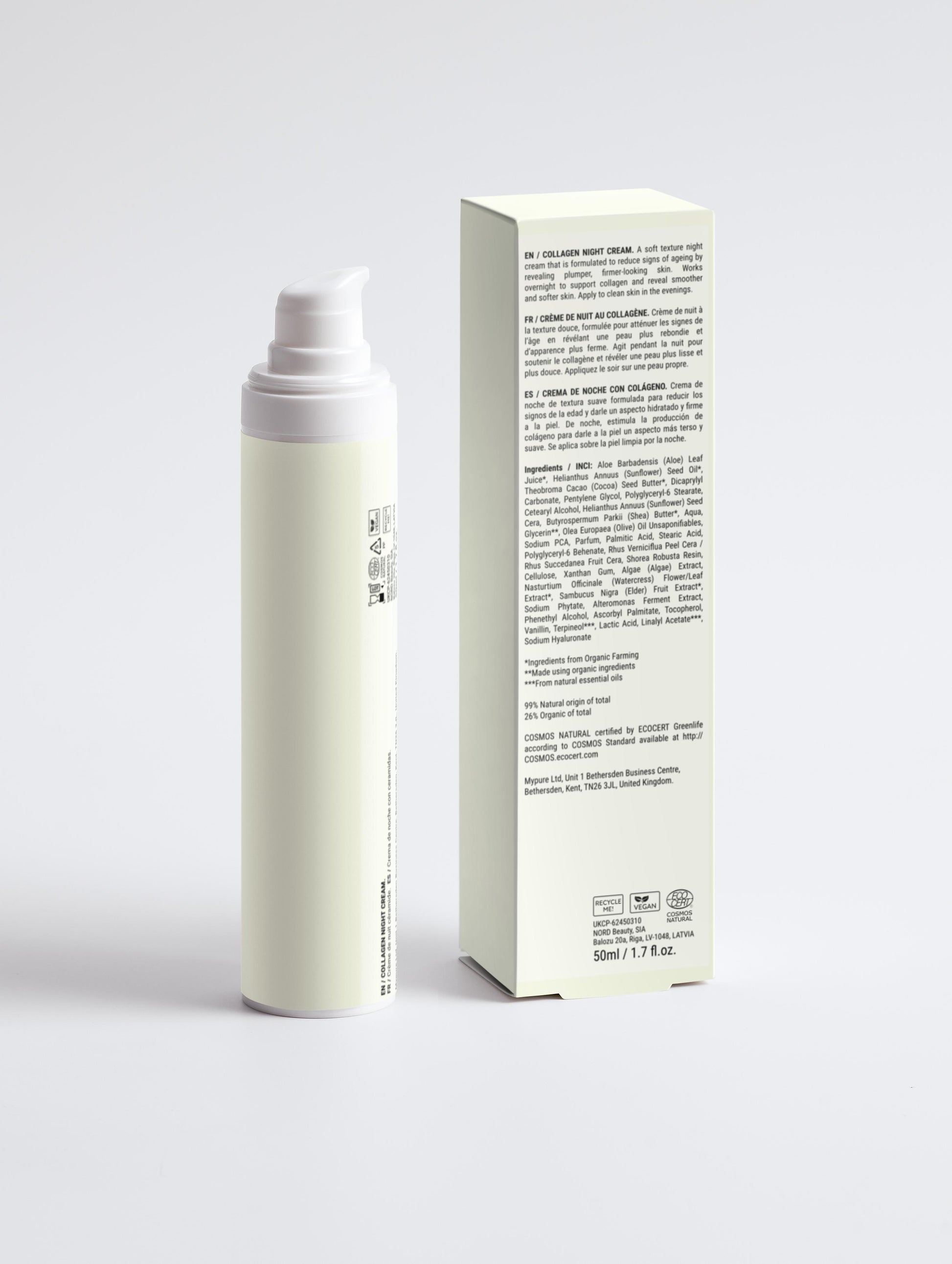 Introducing Collagen Anti-Age Night Cream, a great companion to Anti-Age Day Cream for a complete anti-aging skincare routine and maximum collagen support. Perfect for adding to the existing skincare assortment. Velvety Collagen Anti-Age Night Cream is formulated to reduce signs of aging, revealing plumper, firmer, and healthier-looking skin. It has a soft and rich texture that absorbs effortlessly and easily layers with other skincare products. With the help of innovative marine plankton extract, the cream works overnight to support collagen and reveal smoother and softer skin in the morning. The nourishing power of Cocoa and Shea Butter ensures deep hydration. Apply to clean skin in the evenings.
